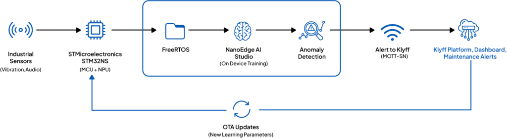 The “Hard Tech” Solution: Klyff implemented a Continual Learning loop directly on the ARM Cortex-M7 gateway. The system used Online Anomaly Detection to learn the machine’s new “baseline” every 30 days without sending raw vibration data to the cloud.