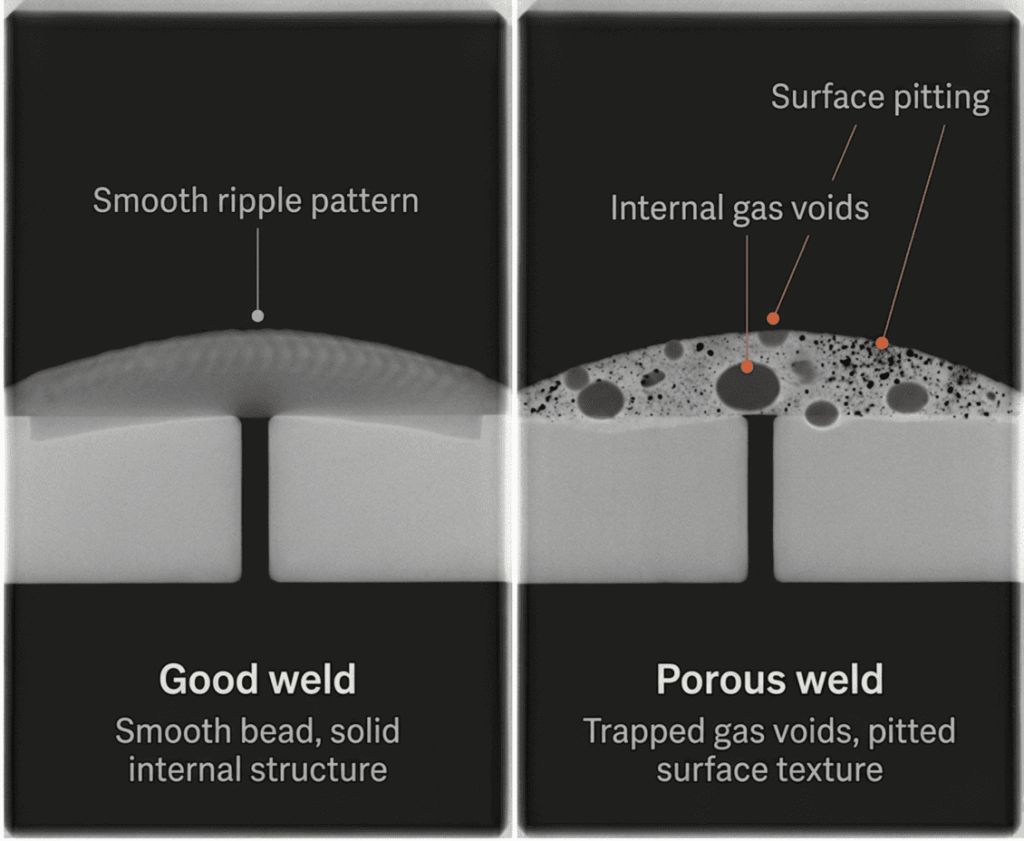 Porosity is one of the most common and difficult-to-detect welding defects. Porosity-related rejections account for an estimated 20% to 40% of all weld repair work in heavy industry. The exact value depends on the process and sector.