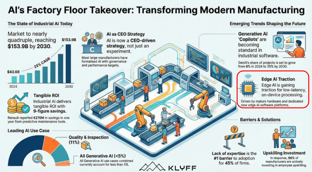 Edge AI is the “brain” of the modern factory. By moving intelligence to the point of action, manufacturers can achieve levels of agility and precision that were previously impossible. As highlighted by IoT Analytics, the leaders in this space are those who move beyond the “Pilot Purgatory” and successfully integrate AI into their core operational workflows.