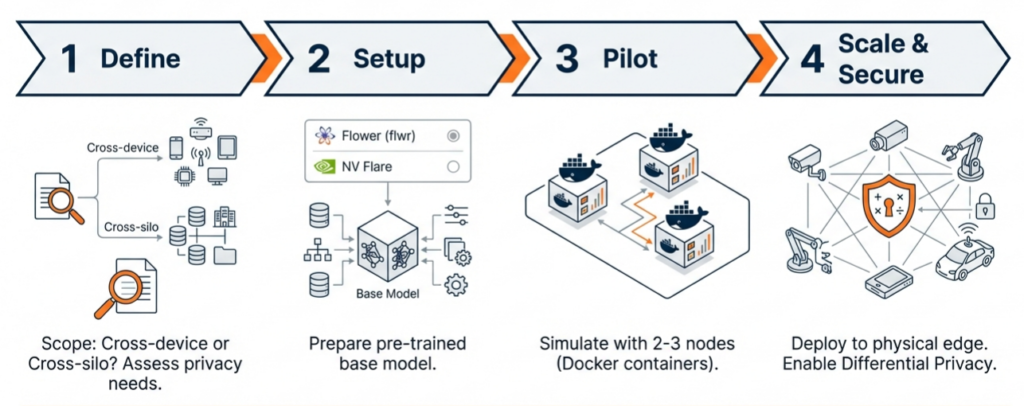 Implementing Federated Learning in a manufacturing environment requires a sophisticated stack that spans from the hardware edge to the cloud.