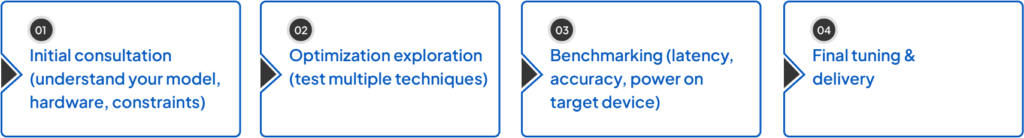 This service uses vendor-specific toolchains and kernels (TensorRT, Coral Compiler, OpenVINO, CMSIS-NN, Arm Ethos-U) to map models onto each platform’s fastest operators, tensor layouts, and hardware accelerators.Â